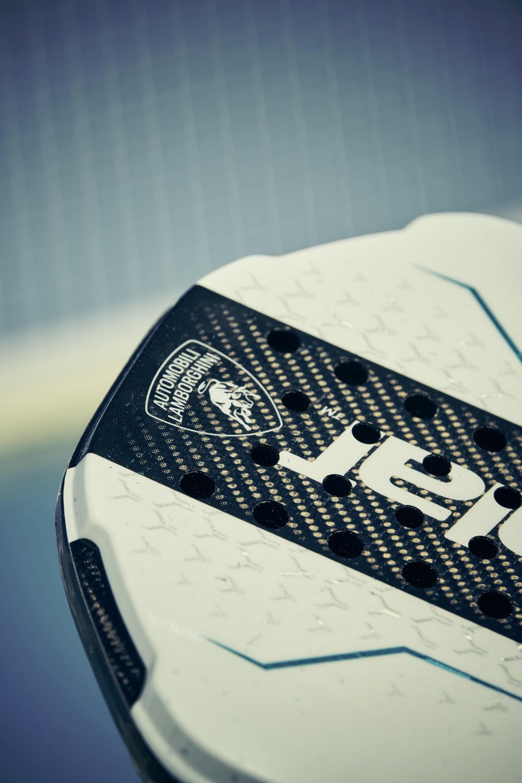 Its lightweight build and aerodynamic profile are designed to improve manoeuvrability on court. The surface uses 3K carbon, while the frame is reinforced with Koridion, a foam derived from patented technology also used in Lamborghini vehicles.
