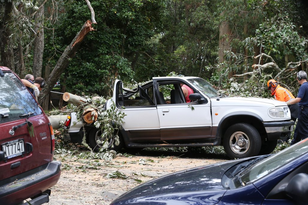 Mr Vakauta ran away from his 4WD seconds before the large tree smashed onto his vehicle.