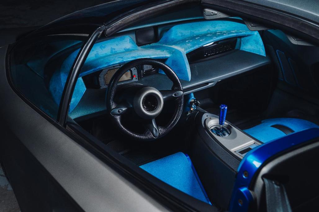 The interior is equally fighter jet-inspired, albeit with lots of vibrant blue Alcantara, with glass screens, aviation-style seats, fibre-optic lighting and rear-view cameras. A Formula One-derived Magneti Marelli digital instrument cluster was used in the dash, while it was also fitted with an Alpine audio system that was seemingly obligatory for concept cars from the 80s and 90s.