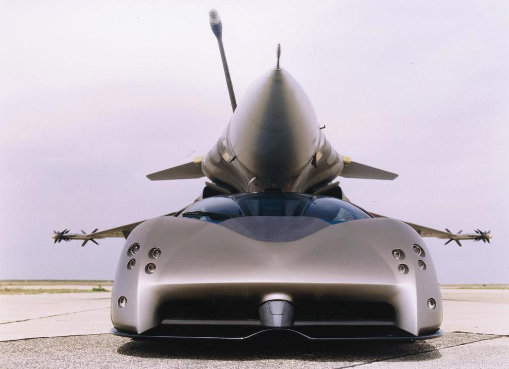 Much like more recent Lamborghini concepts like the 2007 Reventón and the 2013 Egoista, the Pregunta was inspired by a fighter jet, the French Dassault Rafale. It features carbon fibre bodywork by Heuliez, with enormous air intakes, canopy-like scissor doors, wraparound glass and matte grey paint that all reference the Rafale.