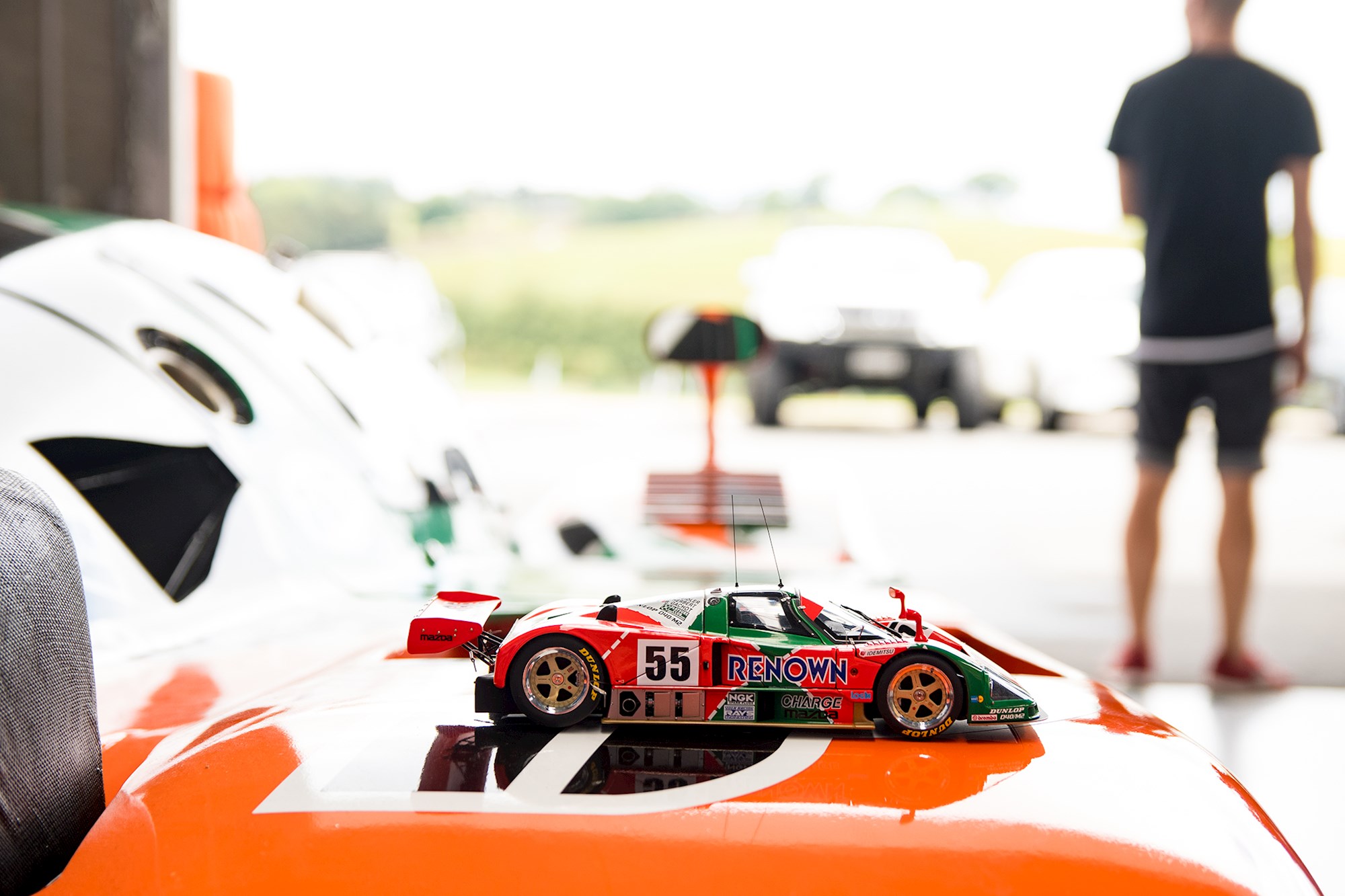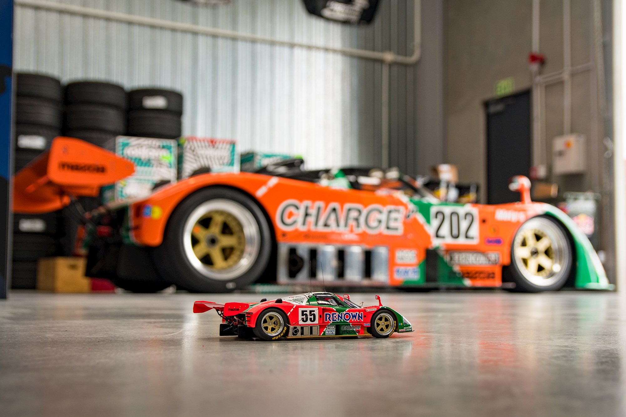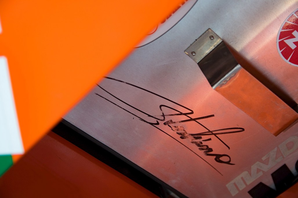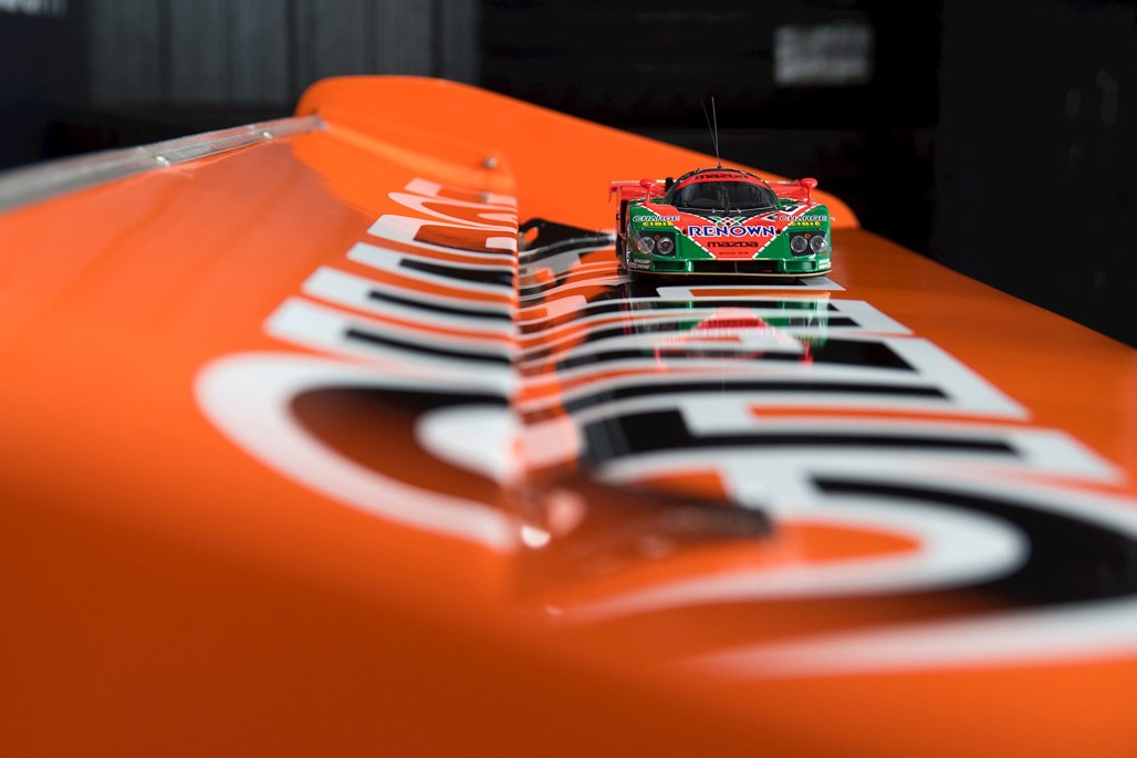 We're sitting in his office, surrounded by Mazda and Red Bull paraphernalia. On the opposite side of the wall behind us, a bright orange and green 'exception' to the reliability rule — a Mazda 767B. Fresh off the boat for its Kiwi debut at Mad Mike's Summer Bash in Hampton Downs this weekend.