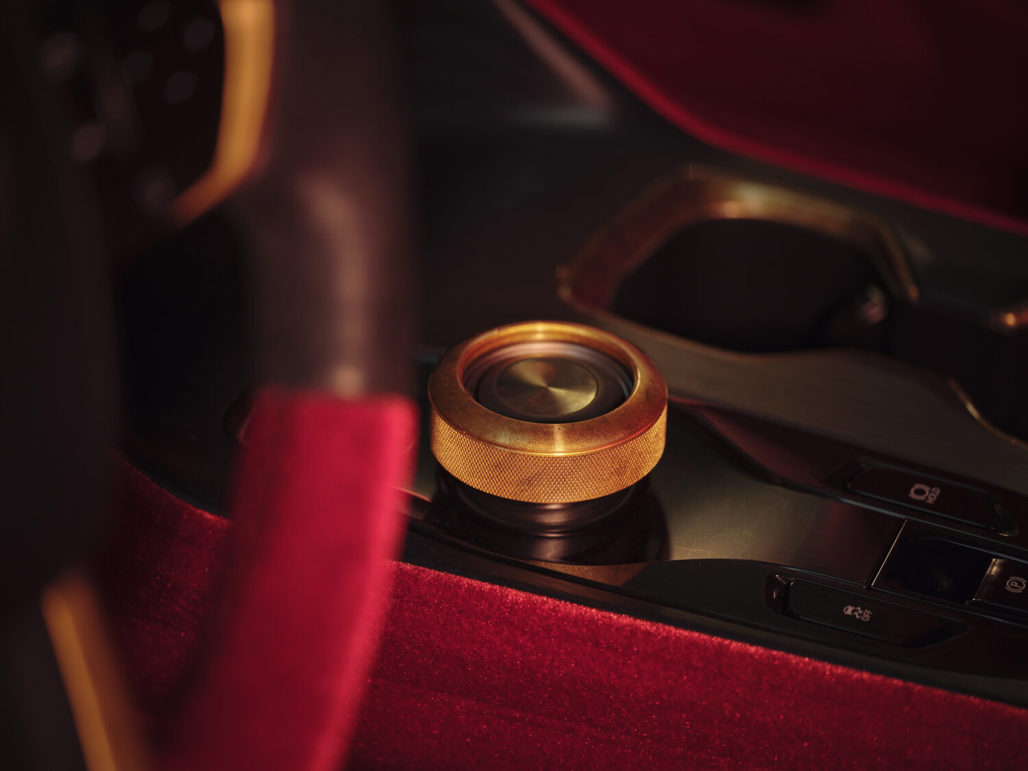 Subtle nods to Miles Davis run throughout. Brass accents referencing his trumpet appear on the brake calipers and interior details, while the cabin combines burgundy velvet and aged leather to evoke a classic instrument case.