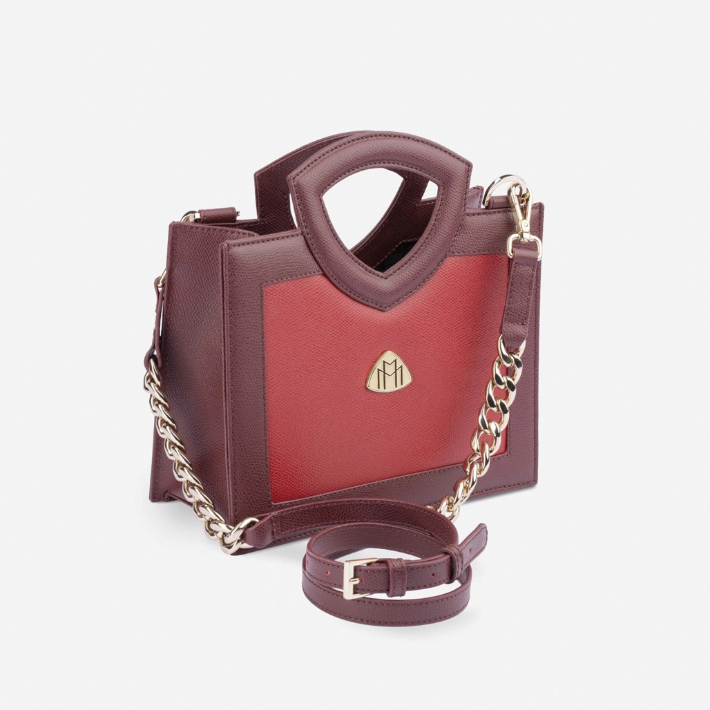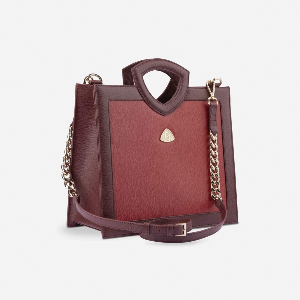 The Euphoria I and II shoppers offer the boldest visual signature, shaped in Maybahc's distinctive triangular profile and trimmed with gold or silver hardware. The larger bag measures 30×26.5×12.5 cm, with the smaller sitting at 23×18.5×9.5 cm, both crafted from embossed calfskin.