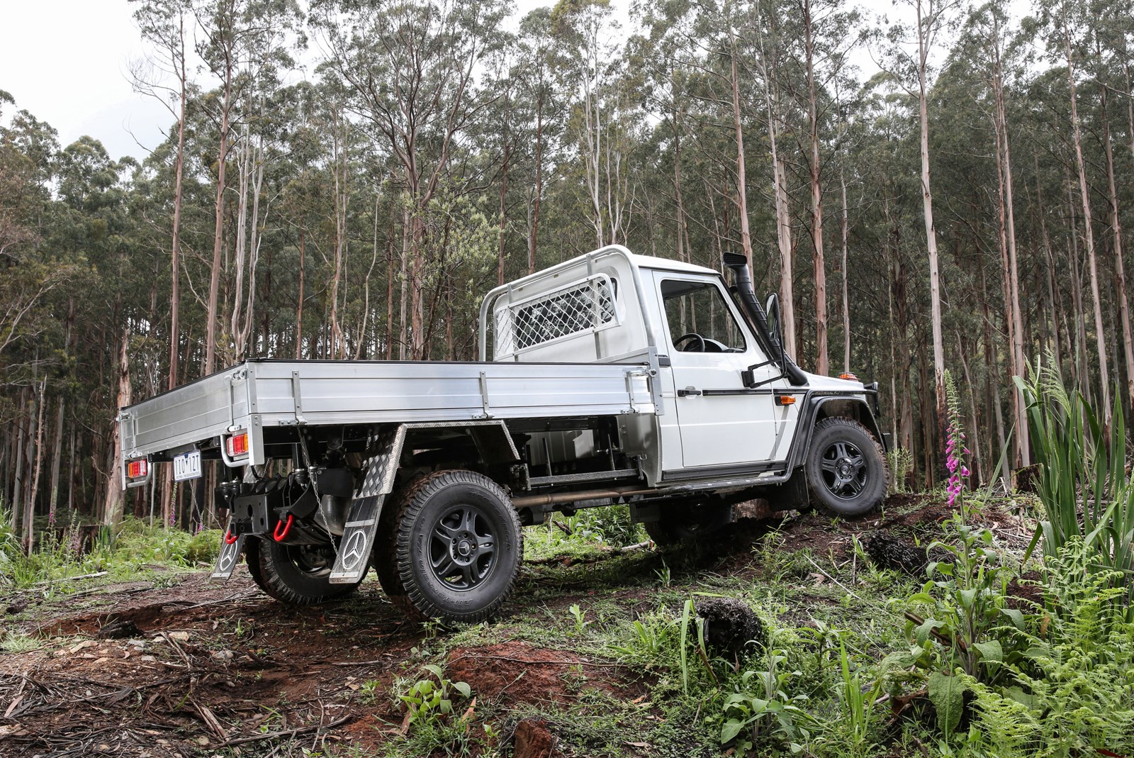 Fitted with permanent all-wheel-drive with a 50:50 front-rear split, the G-Professional has a recommended maximum fording depth of 650mm; an approach angle of 38° and departure angle of 35°; and a break-over point of 22°.