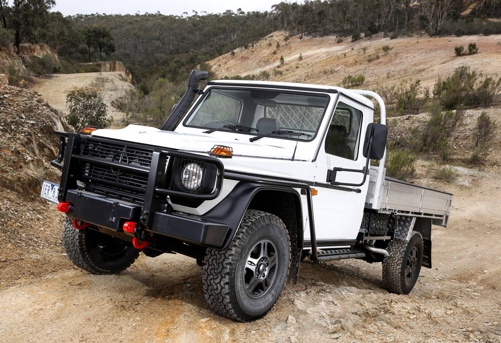 External features fitted as standard include a snorkel; bull bar, headlight and indicator protection painted in black; radiator and sump shields; 16-inch alloy wheels and all-terrain tyres.