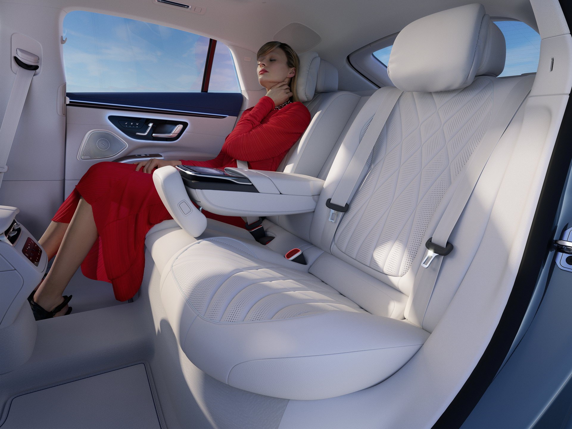There are other benefits, too. Mercedes claims the lavish five-seat interior of the EQS is larger than any other luxury EV. The cab-forward proportions make the bonnet shorter and the interior longer. Because electric motors are very compact, the front overhang can be shorter and the wheelbase longer. This also makes for a roomy cabin.