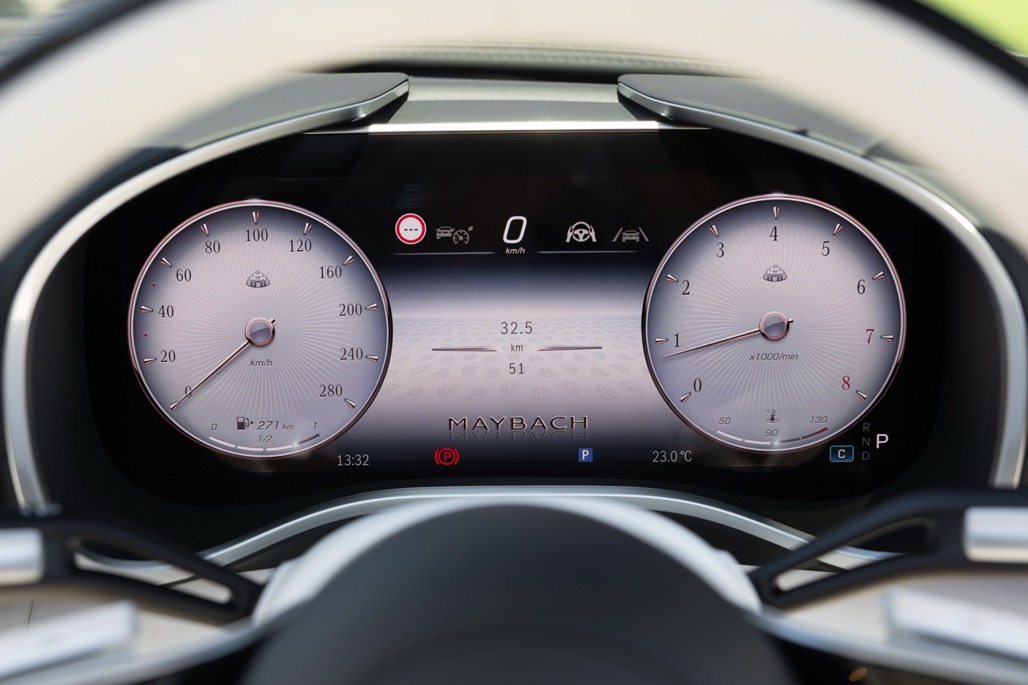 The nine-speed transmission includes a dedicated Maybach drive programme, and there's rear-axle steering with up to 2.5 degrees of lock for agility that shouldn't exist in a car this serene.