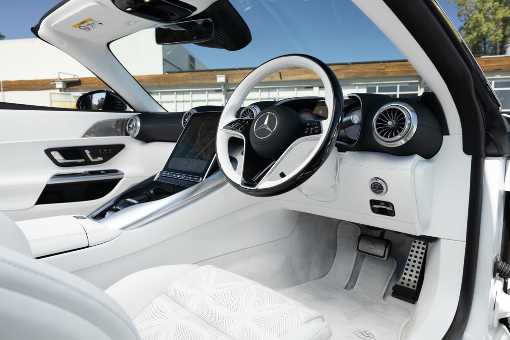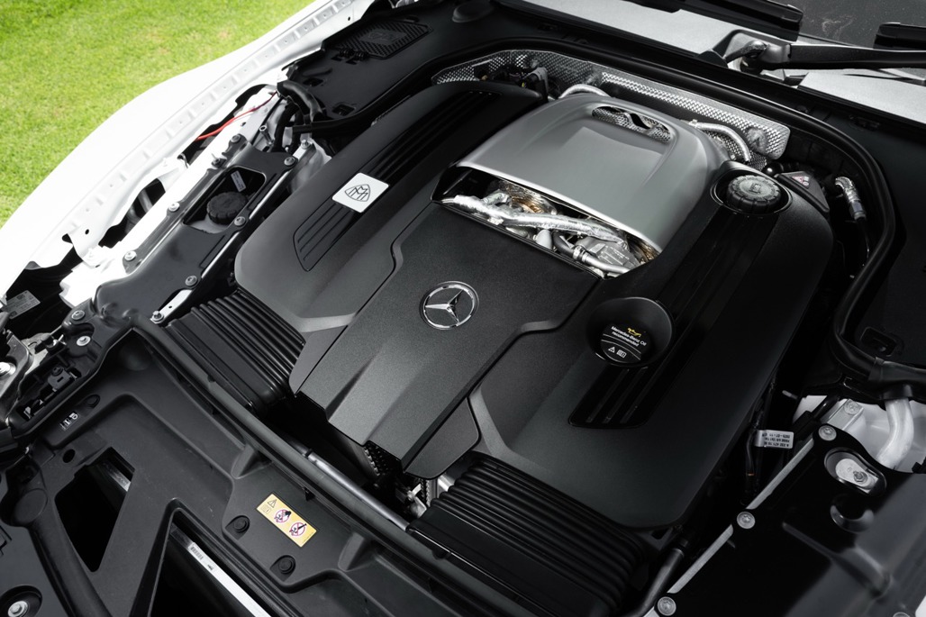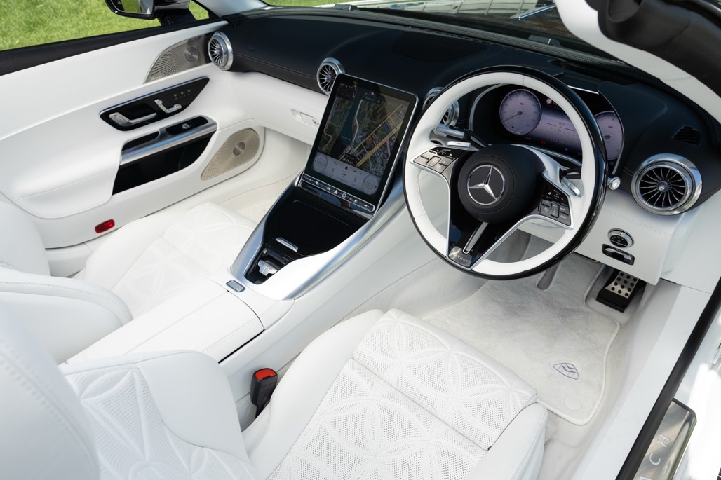Under the bonnet sits a 4.0-litre V8 biturbo pumping out 430kW and 800Nm of torque. Via 4Matic+ all-wheel drive, that translates to 0 to 100km/h in 4.1 seconds, which is genuinely quick for something that weighs more than a standard SL and rides on a chassis tuned for composure rather than carving apexes.
