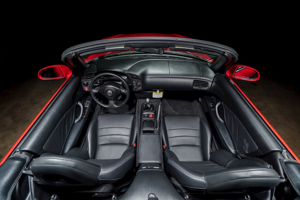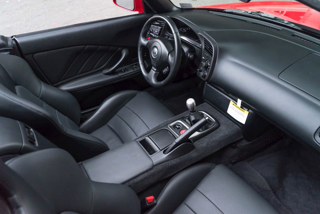 Along with beautiful paint and satisfyingly crease-free leather, the minter S2000 also comes with original manuals, price sheets, and all of the manufacturer's original safety stickers. The ones that normally get binned the moment the buyer signs on the dotted line.