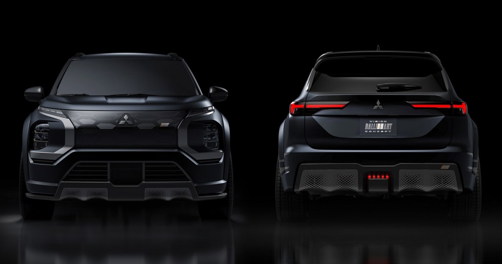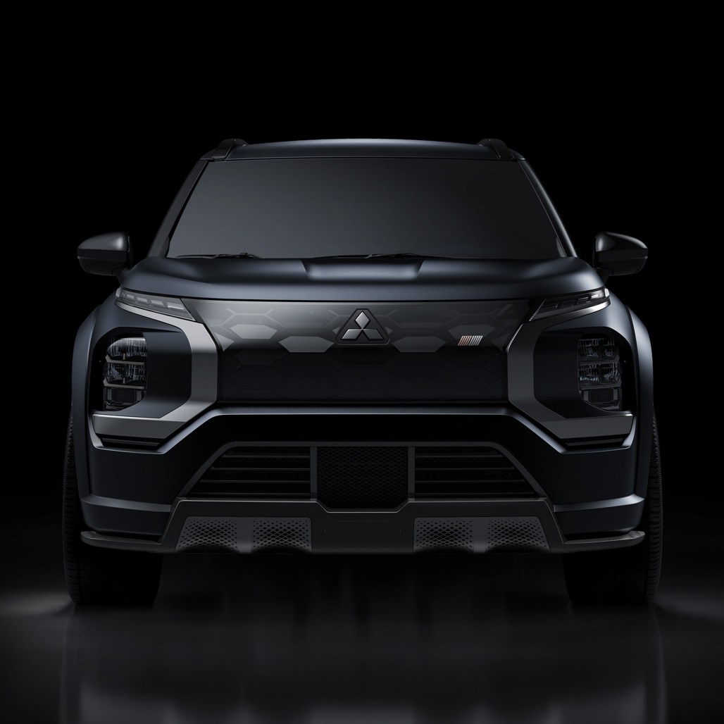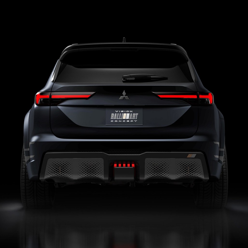 The car, which is based on the Outlander PHEV, features futuristic 22-inch wheels and a wide bodykit which separates it from the standard Outlander. The body includes a fully covered front grille and a Ralliart badge, a redesigned front bumper which reaches closer to the ground, fender add-ons, and a new rear bumper with a large diffuser and F1-inspired brake lights. The concept is finished in a matte black with blue highlights when lit.