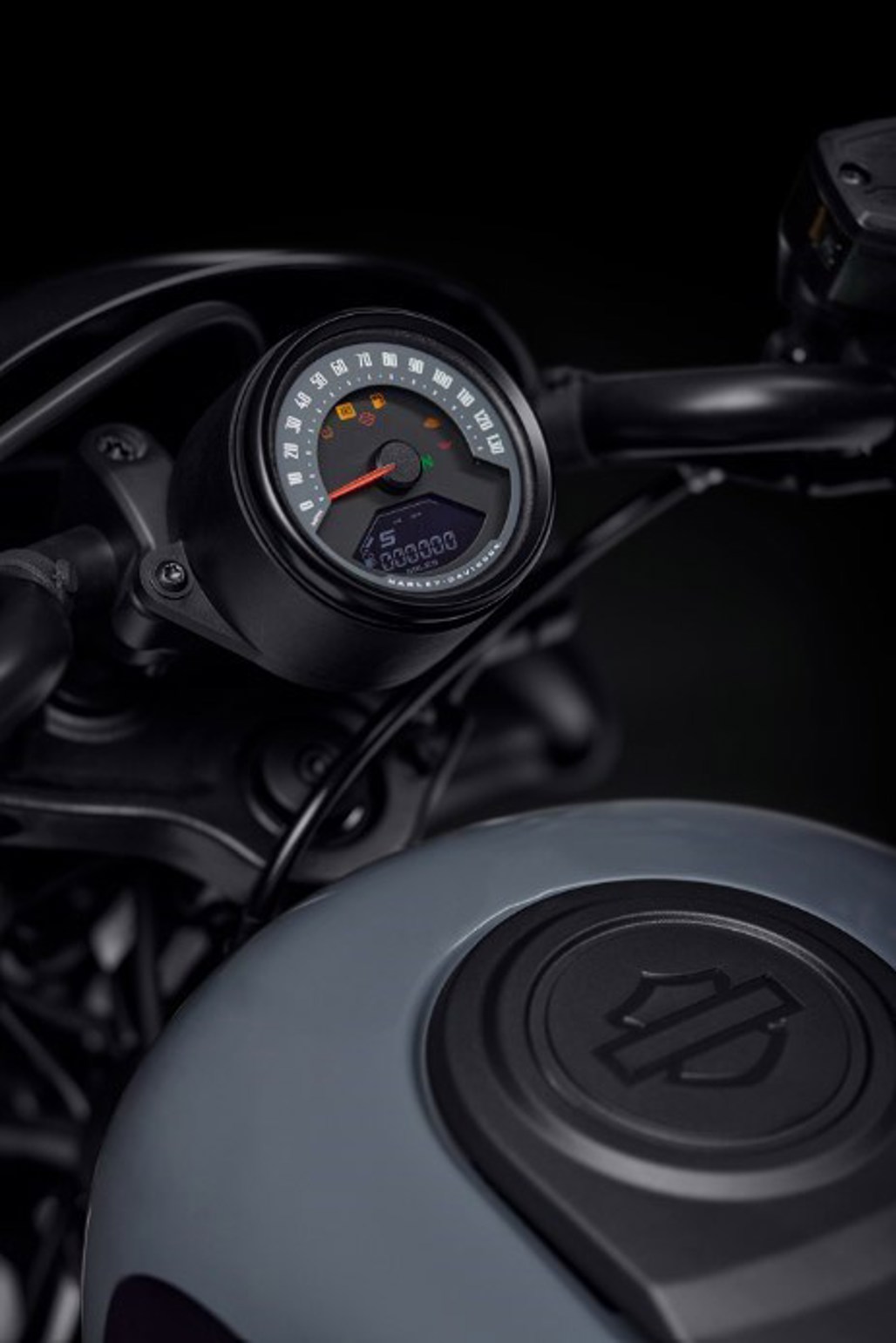 Up front is a 19-inch front wheel (matched to a 16-inch rear) with a classic headlight cowling while the controls are mid-mounted. Behind the headlight is a traditional analogue speedo with LCD insert to keep the rider informed rather than the TFT of the Sportster S.