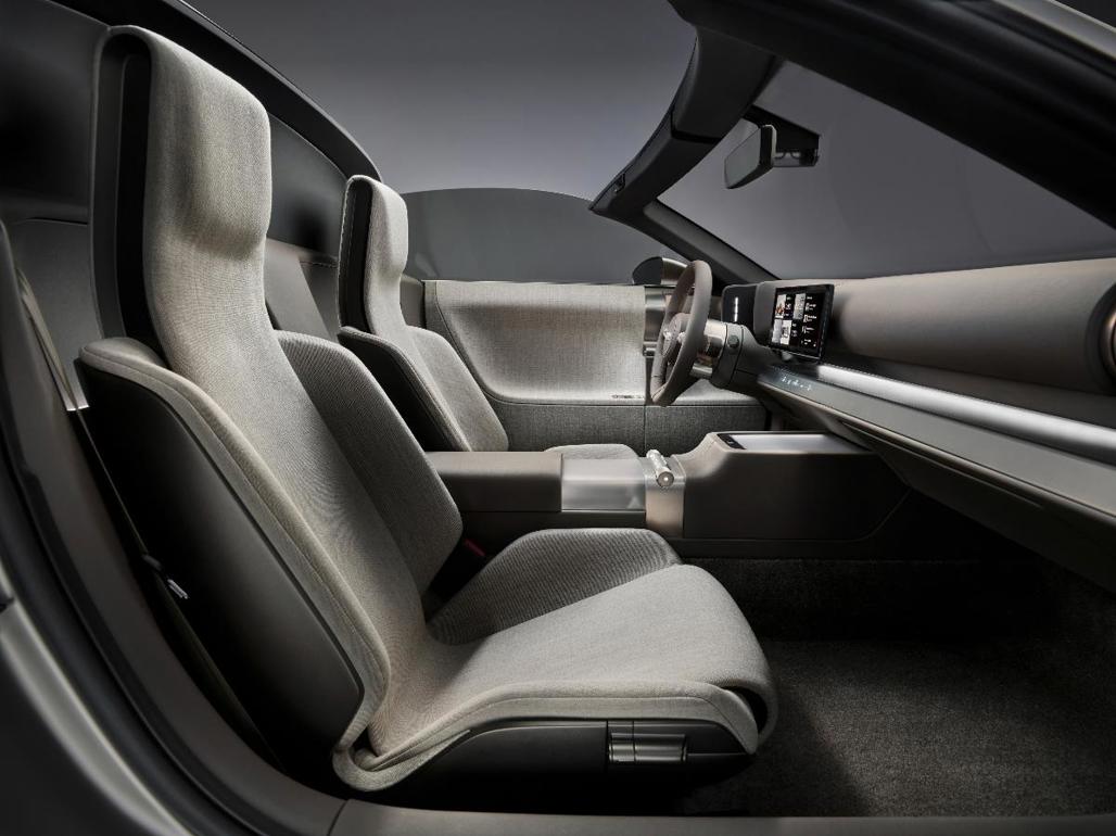Physical controls are manufactured from anodised aluminium to provide a "tactile experience that reflects mechanical quality", while the steering wheel features haptic elements and the interior uses "shy technology" with a foldable centre display that "is always close by, yet never dominant" and provides users with relevant information in "an intuitive way and in context" that is tailored to every situation.