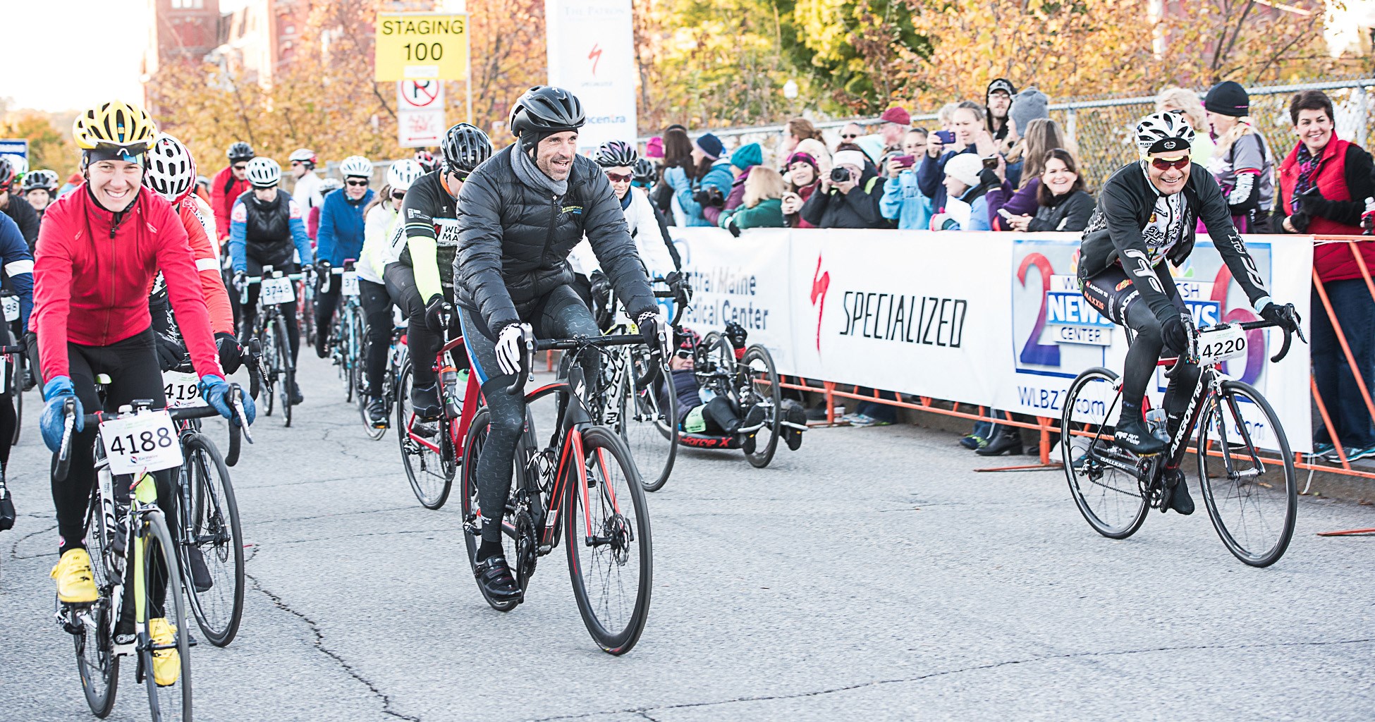 Patrick Dempsey, center, starts his bike ride at the Dempsey Challenge on the final day of the two-day bike-and-run fundraiser last month, in Lewiston, Maine. The event was a fundraiser for The Patrick Dempsey Center for Cancer Hope & Healing at the Central Maine Medical Center. Picture/AP