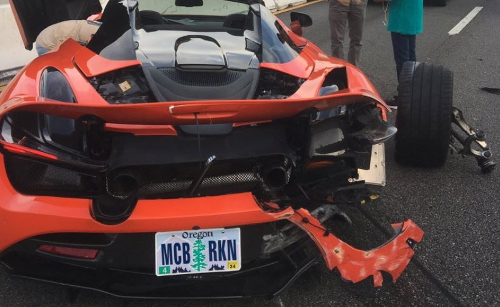Images posted to Twitter of the aftermath show the McLaren's front and rear end heavily damaged, with the right rear wheel torn off completely.