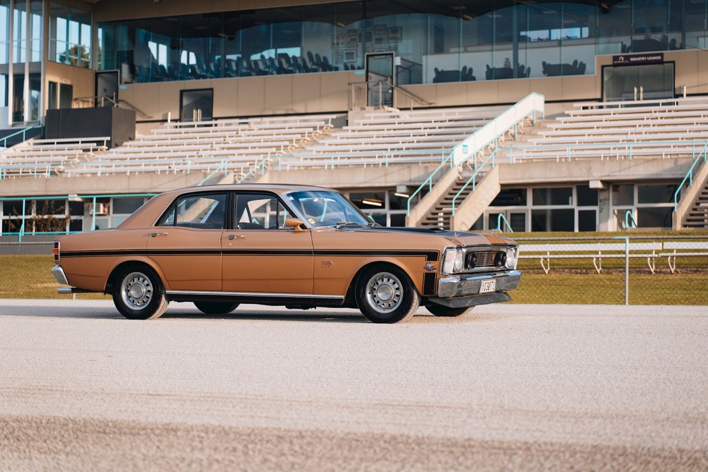 The Aston Martin is showcased alongside a racing pedigree 1969 Ford Falcon XW GTHO (Phase 1). This vehicle competed at the 1969 ‘Great Race’ at Bathurst by Bob Genders and Joe Butta, it finished 12th overall – a remarkable result for a couple of privateers with minimal corporate backing. This incredible Grecian Gold iteration of the Ford marque has been in the vigilant care of its vendor since 1987.