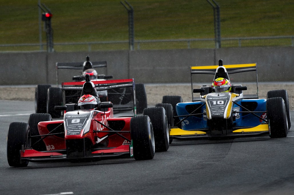 Heavy showers and potential hail were forecast for Sunday's racing, and while the category avoided it for race two things were different for race three. A long pre-race shower glazed the track prior to the start, with further drizzle helping maintain slip for the opening laps.