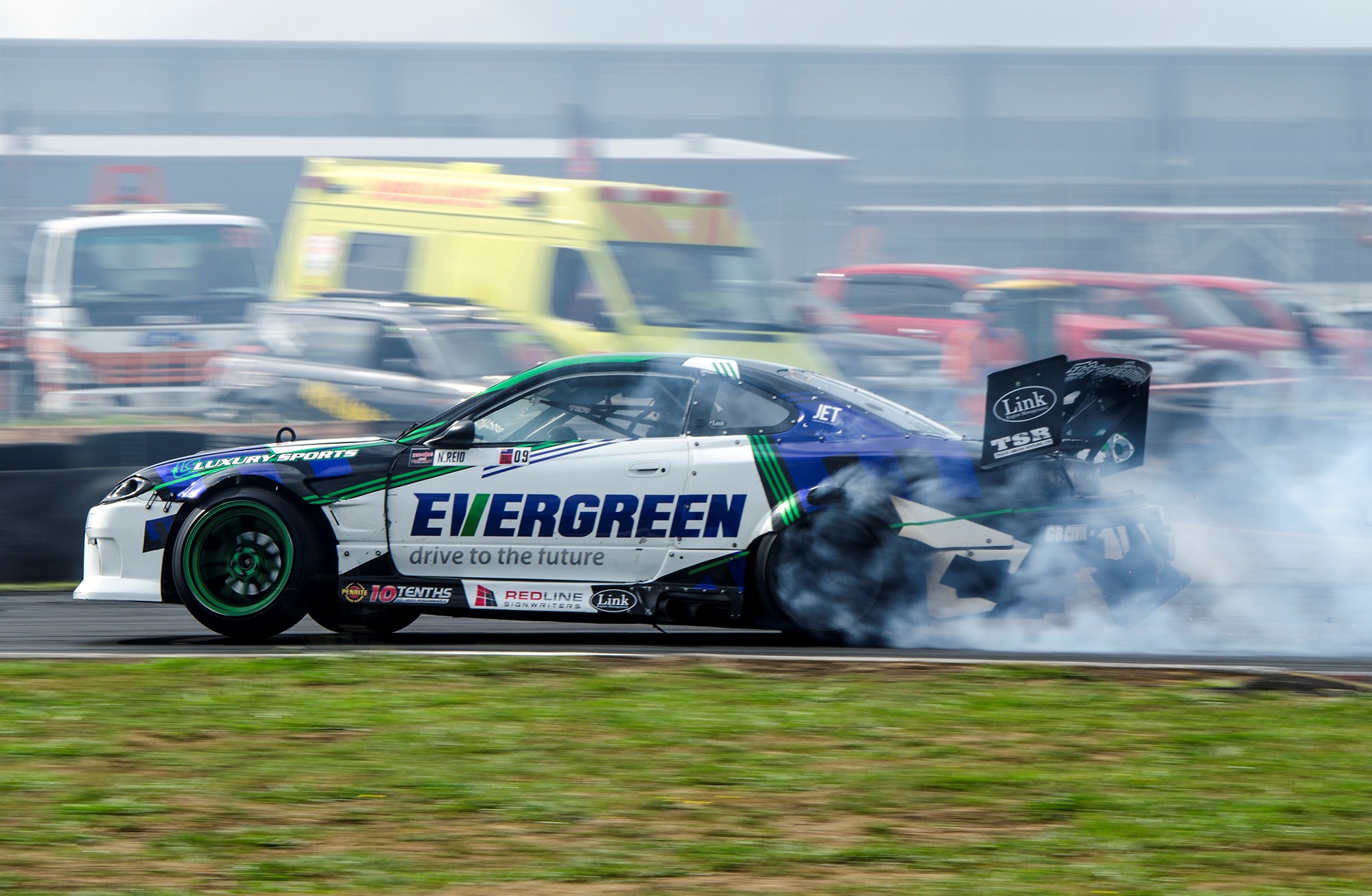 Evergreen Nissan Silvia Pilot Nico Reid has won round four of the 2015–’16 D1NZ National Drifting Championship, held at Waikato's Hampton Downs. But his route to victory was a torrid one.
