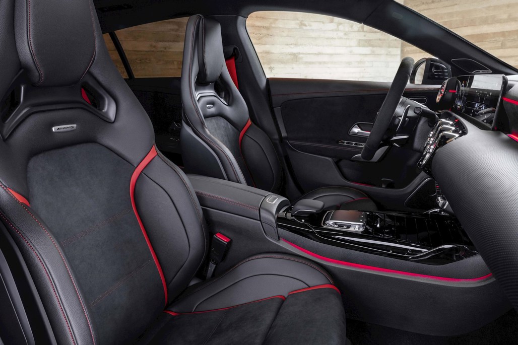 This compliments an interior packed to the brim with tech. All new CLAs come with the acclaimed MBUX infotainment system and the German brand's new more minimalist style and texture details. The AMG Shooting Brake adds things like contoured sport seats, AMG-specific displays, and red touches everywhere — from the designo seat belts to the seat piping.