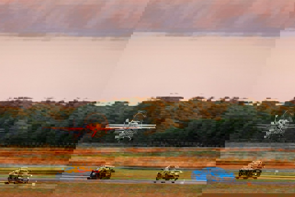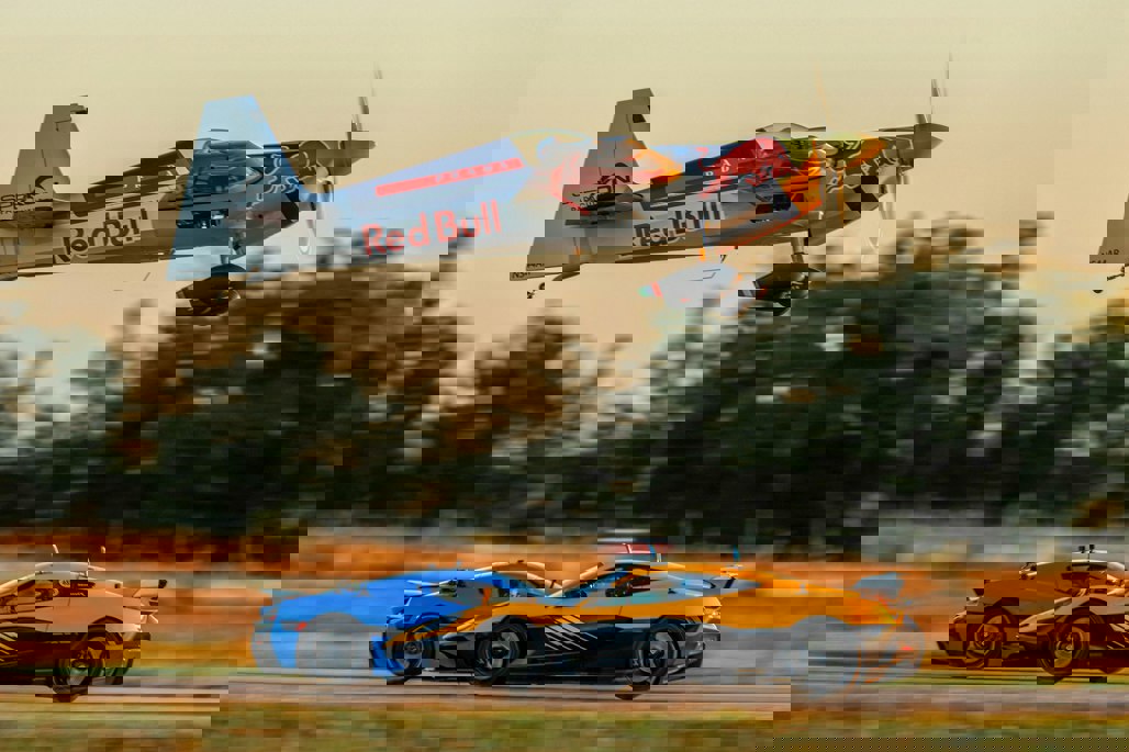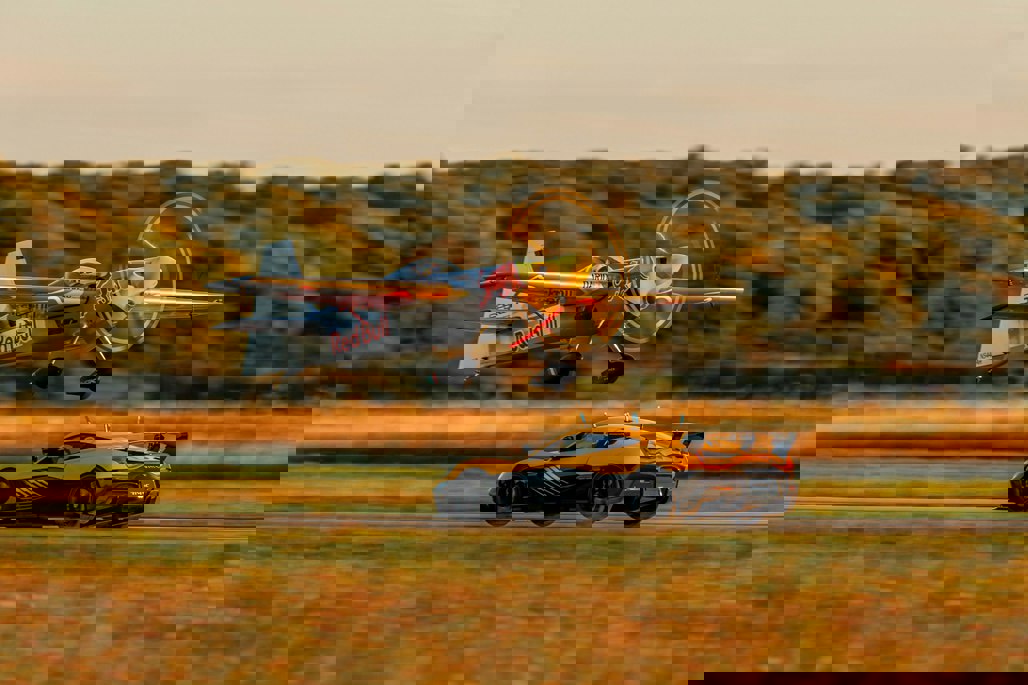 Rather than acting as a pace car in the traditional sense, it was used as a high-speed moving reference, driven in reverse to mimic the relative motion Costa would experience during his landing approach.