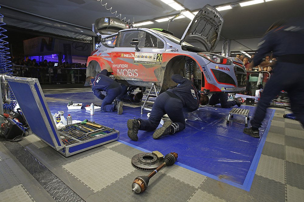 In contrast to the roadside work the WRC service park is a fully equiped workshop. Pictures/Hyundai Motorsport