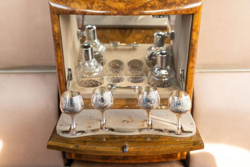 The car is fitted with a body by British coachbuilders H.J Mulliner Park Ward befitting the needs of royal travel, Webb’s said.