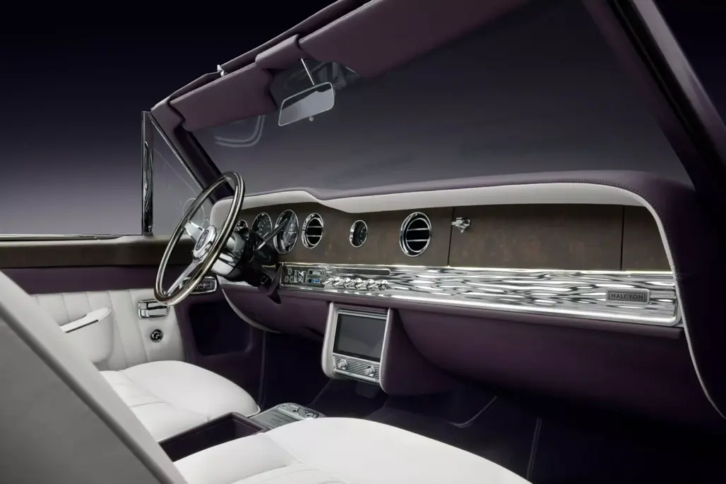 Beyond the drivetrain, Halcyon reimagines the Corniche’s cabin with natural materials, bespoke detailing and an unexpectedly wide options list. Heated and ventilated seats, hidden infotainment, automatic climate control and an upgraded sound system all bring 21st-century comfort. One customer even specified a two-seat layout with a sculpted rear cabin, and Halcyon is exploring a custom Louis Vuitton luggage set for future builds.