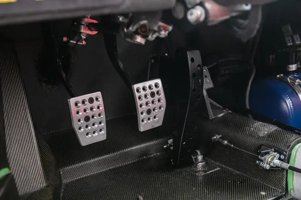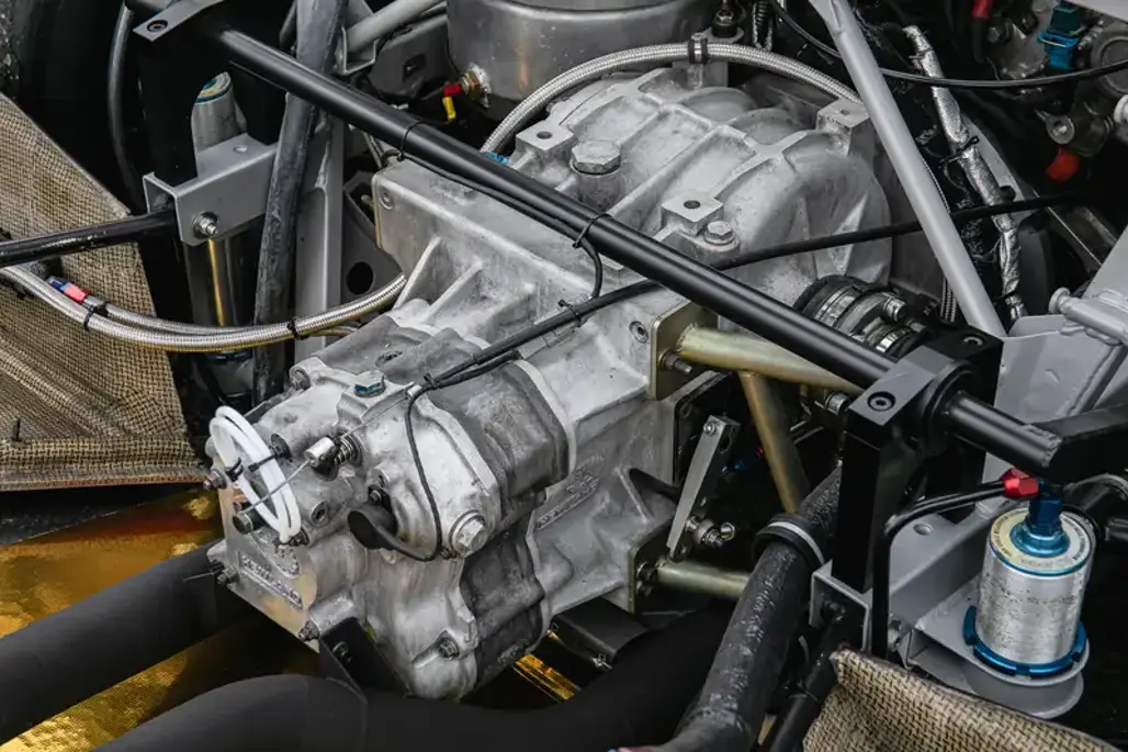 The modified sports car boasts an FIA-spec reinforced chassis, a roll cage and a Hewland six-speed sequential gearbox.