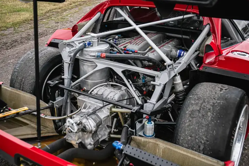 Following a crash test, the chassis was acquired by Simpson Motorsport, a UK-based racing team, through their connection with race car driver Stefano Sebastiani and former Ferrari boss Amedeo Felisa. This partnership led to the transformation of the F40 into a V12-powered racing machine.