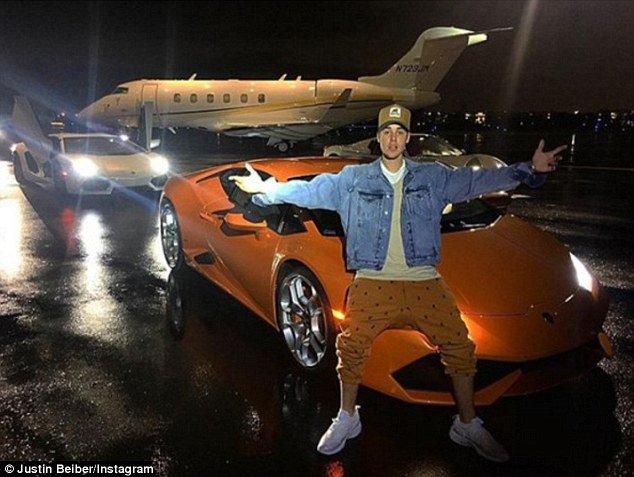 Quite a fan: He's always enjoyed an outrageously painted and incredibly fast vehicle (pictured with his Lamborghini Huracan in December 2015).