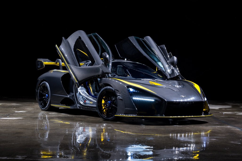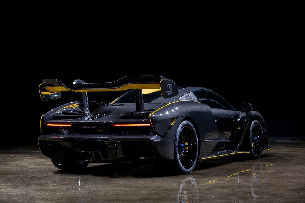 Along with the jaw-dropping carbon and yellow body, this Senna has a few other interesting specifications. These include the blue centre-caps on each wheel, yellow calipers, and highlights in interesting locations — such as underneath the rear wing and on the roof scoop.