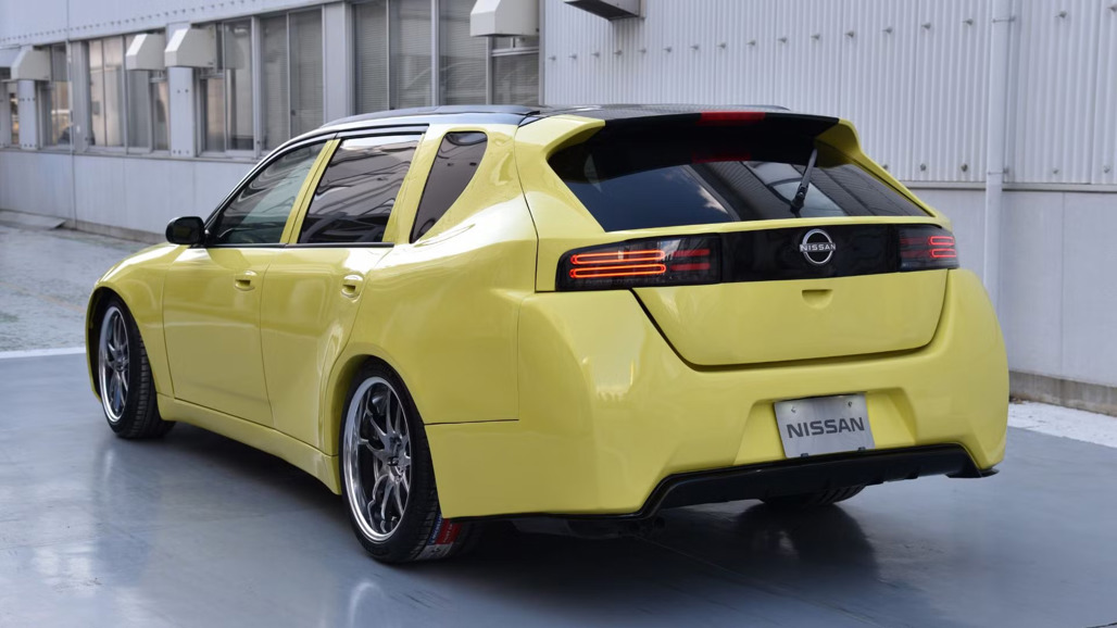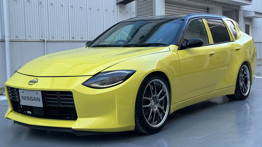 Built on the M35 Stagea platform, the car integrates design elements from the RZ34 Fairlady Z, including sculpted rear fenders and sleek bodywork.
