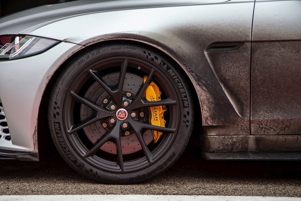 The wheel and tyre package of the Project 8 is the largest ever fitted to a production Jaguar sports sedan. Measuring 9.5 x 20-inch at the front and 11 x 20-inch at the rear, the forged aluminium alloy wheels are fitted with bespoke Michelin Pilot Sport Cup 2 tyres fitted as standard.