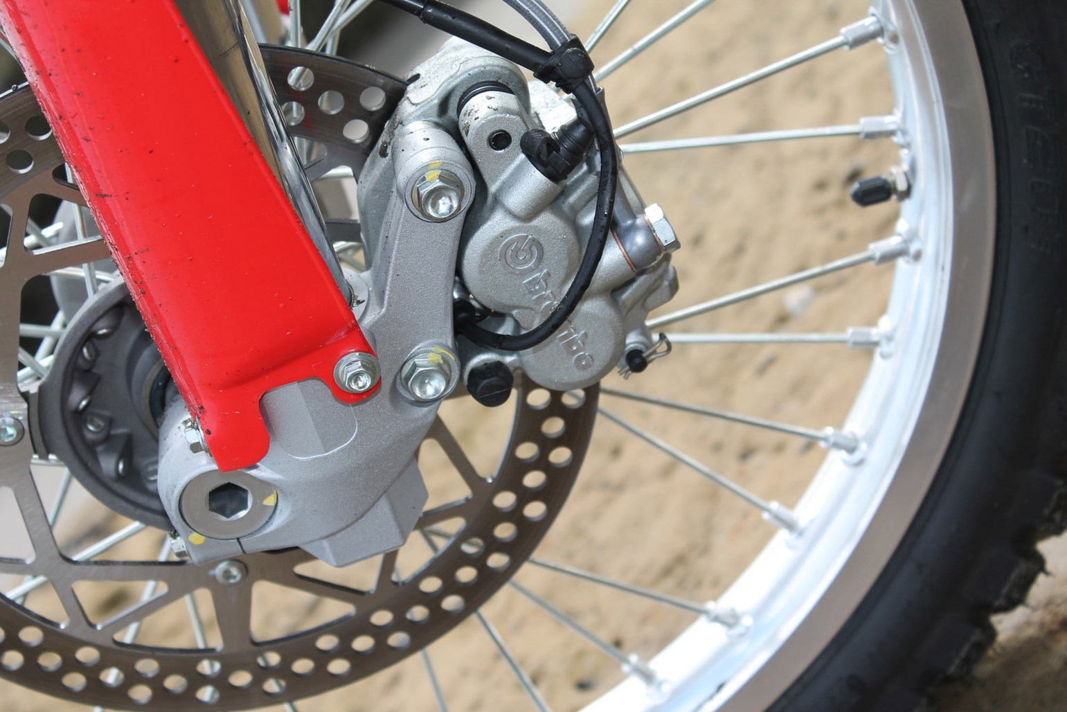 Forks are supplied by Marzocchi and are adjustable for damping, while the brakes front and rear are Brembo supplied units.