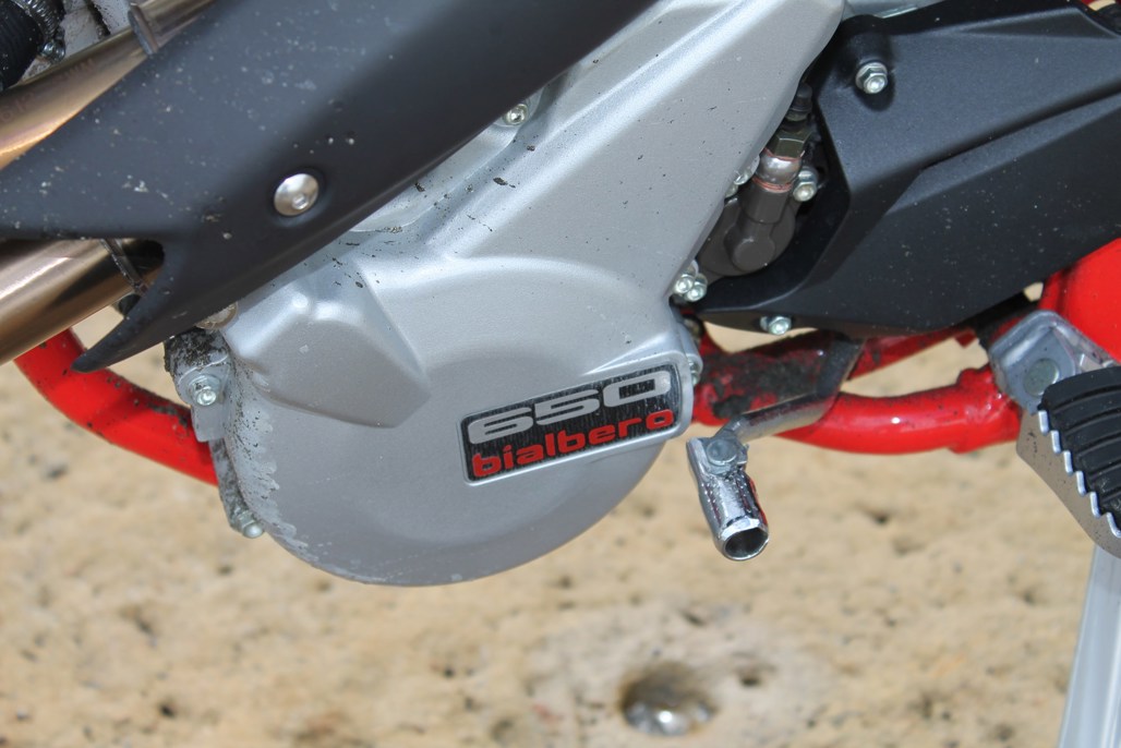 While the factory doesn’t list power figures, the bike is rumoured to have somewhere in the region of 40kw and 50Nm of power on tap from the 600cc single cylinder.