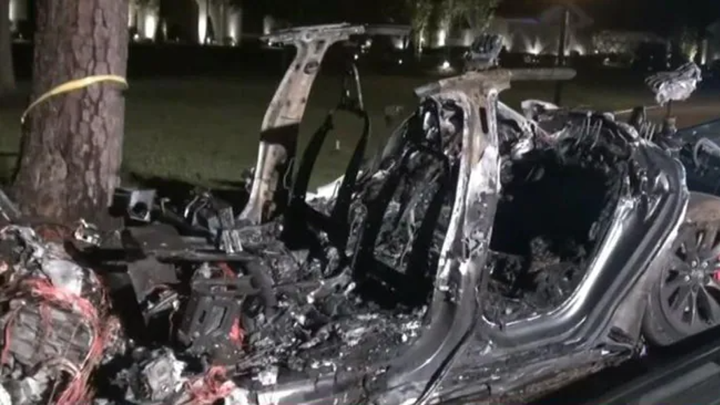 The 2019 Model S Tesla veered off the road after driving fast around a curve, hit a tree and burst into flames in The Woodlands, in north Houston in Texas on April 17.