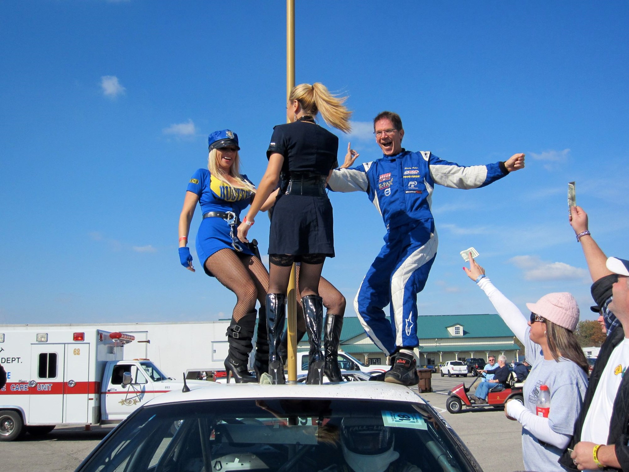 Penalties are a bit different too. Here we see pro race driver Randy Pobst 'forced' (ahem) to work the pole as a penalty for a race infringement. Photo / 24 Hours of LeMons