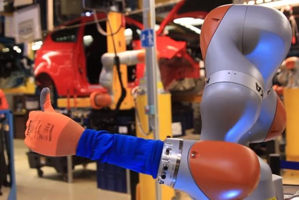 Initially co-bots have been implemented to help fit shock absorbers to Fiestas at FoMoCo’s plant in Cologne, Germany. But we can only assume – unless they try to take over the factory in a technological coup d’etat – they’ll be assimilated into the worker population elsewhere too.