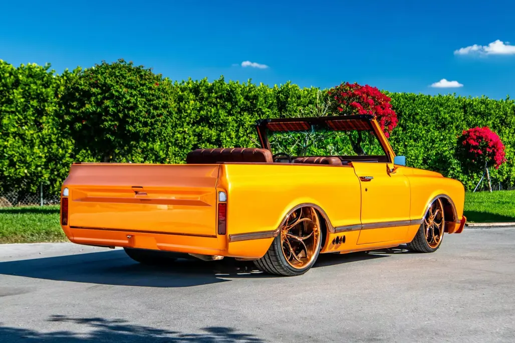 Rather than chasing trail credibility, the build trades articulation for asphalt appeal. The result is a two-door convertible pickup that sits impossibly low, looks impossibly expensive and sounds like it should come with a warning label.