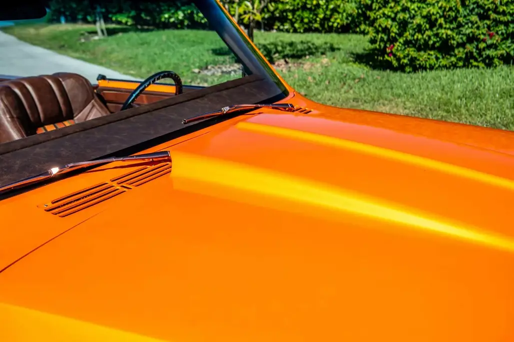 What stands out is the presentation. The engine bay is obsessively clean, with wiring hidden, reservoirs tucked away behind paint-matched panels and even the intake concealed. It’s less hot rod chaos, more high-end concept car.