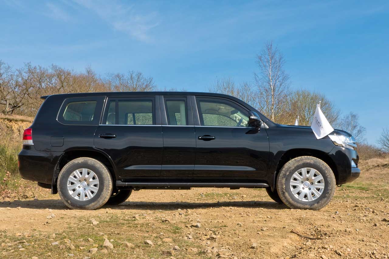 Land Cruisers have always been popular choices for armoured vehicles due to their reliability and build quality. And this one features all the typical tropes. Along with the 50cm extension, it's has LED lights in the grille, a secure two-layer rear hatch, and it's bulletproof with the potential to protect occupants from armour-piercing rounds.