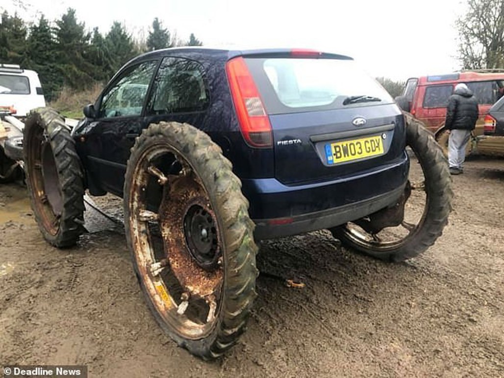 A car salesman took matters into his own hands after a deal for a Land Rover fell through, as he converted a Ford Fiesta into a 4x4 using vintage tractor wheels.