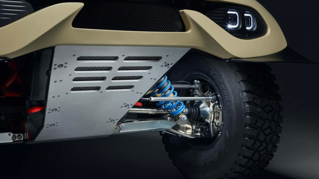 Wild suspension allows for up to 40cm of movement, which is even more than the Dakar Rally car it is based on.