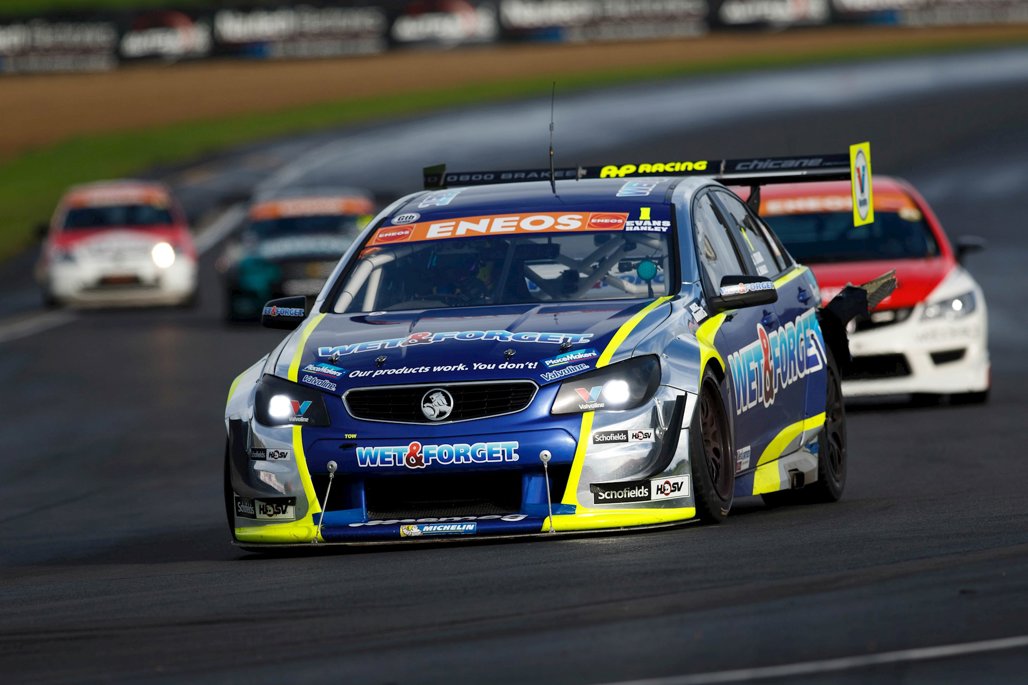 With a dry line evolving Evans edged away. A quicker approach was shown by fourth-placed Commodore VZ Supercar of Nick Chester and Cameron Jones. They were the first of the quick cars to swap to slick tyres and immediately began lapping almost 5secs quicker than the leaders.