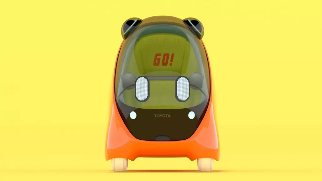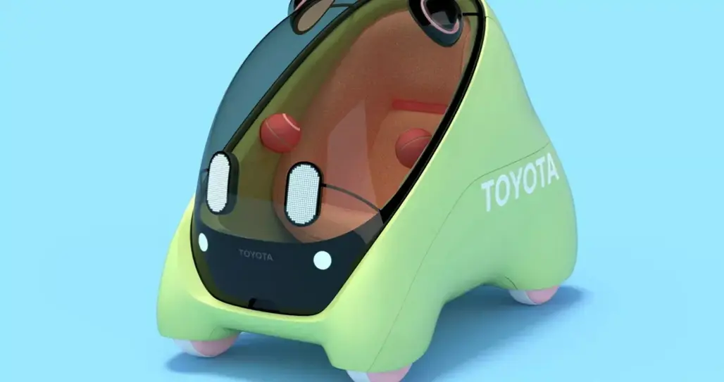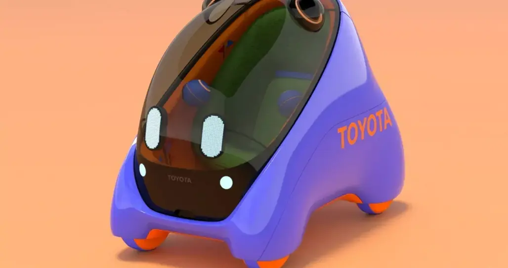 Toyota calls it “safe and secure AI-powered personal mobility for kids.” The pod-like capsule has enclosed wheels, animated LED “eyes” and sensors shaped like ears, which ends up looking more cartoon than car.
