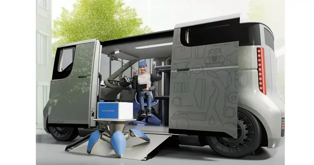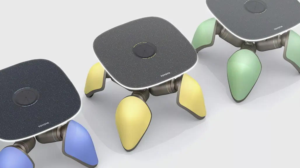The Kids Mobi wasn’t alone on the stand. Toyota also revealed the Chibibo, a four-legged robot that tags along beside people or vehicles. It can haul a child’s backpack or lunchbox and even climb stairs, crouching down in rest mode like a mechanical pet.