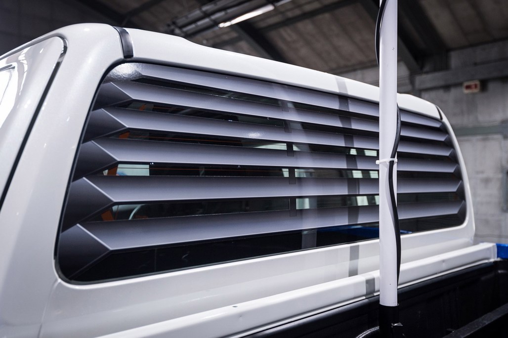 An aerial protrudes out of the center of the bed, and the front nudge bar and custom running boards is depicted in white. This goes for the rear cab, too, which is refashioned to look as close as possible to the mini-me original.