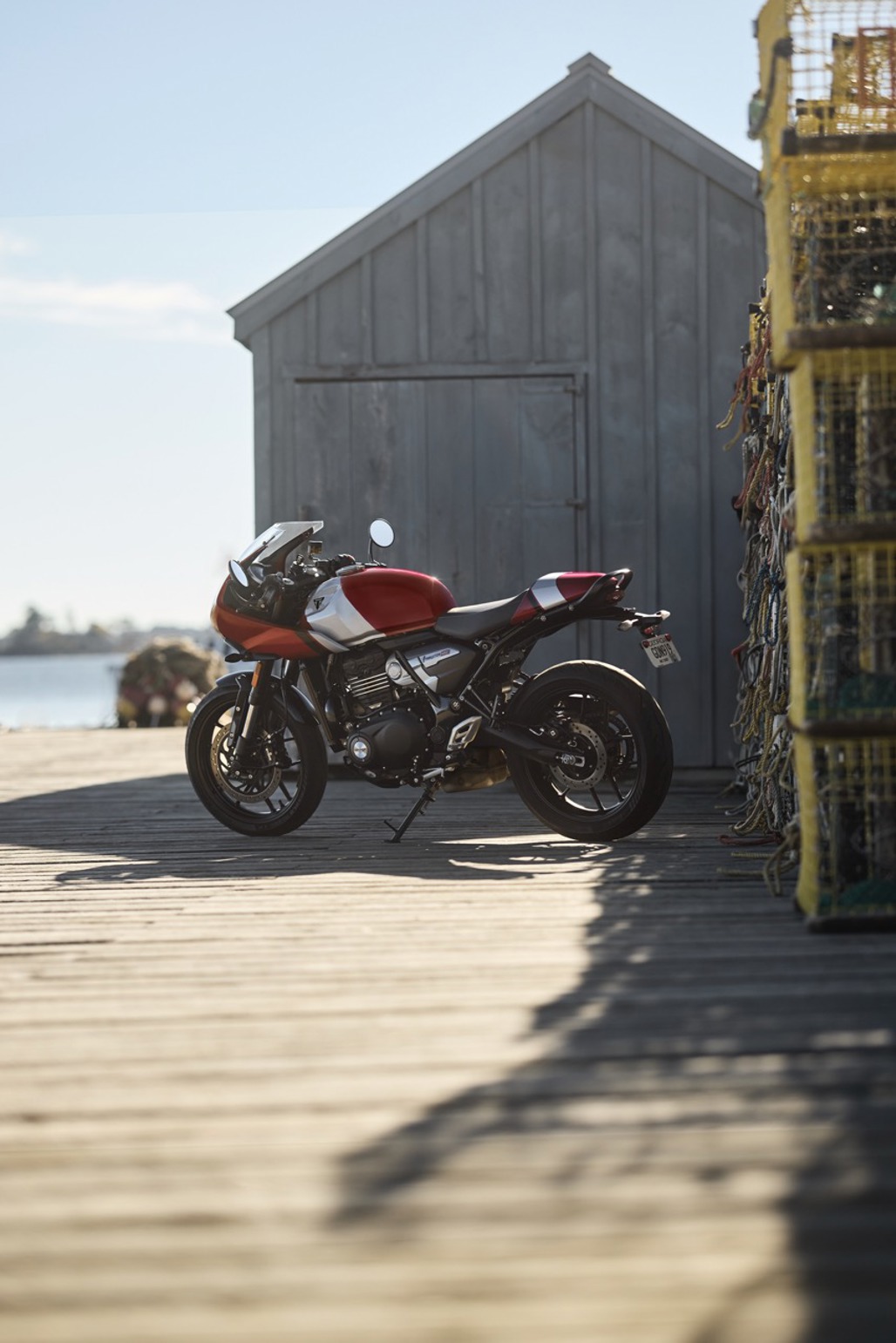 Suspension travel is slightly longer at the front, and styling cues like number boards, upswept silencers and bold graphics channel flat-track racers rather than café stop heroes.