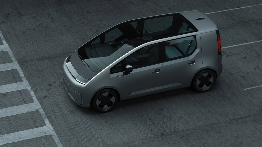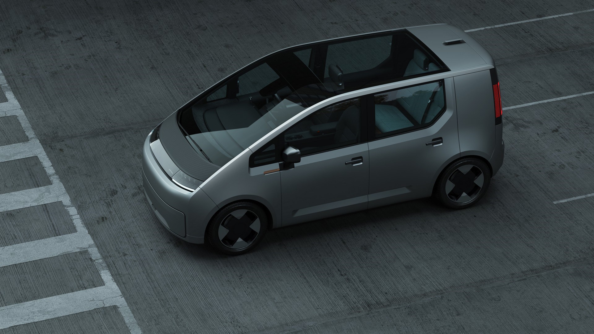 The car sports a boxy design that maximises space, broken up by a large windscreen that flows into a panoramic glass roof. The Car also features aerodynamic wheels, a large greenhouse, and a nearly vertical front fascia.