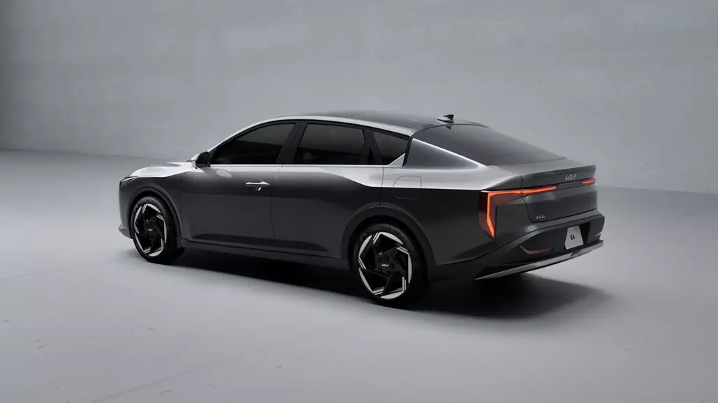 The new K4 borrows the fastback allure and robust D-pillars of the Stinger and combines them with the crisp, modern lines and technological prowess of the EV9 SUV.