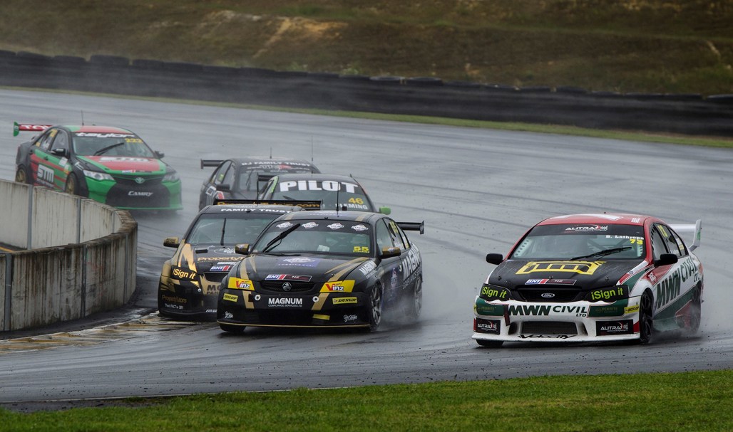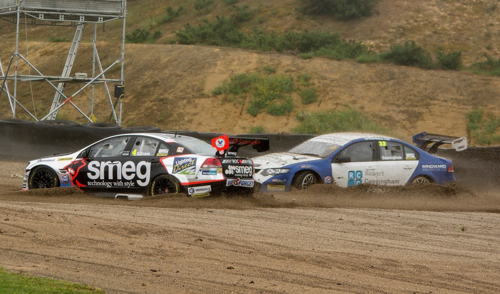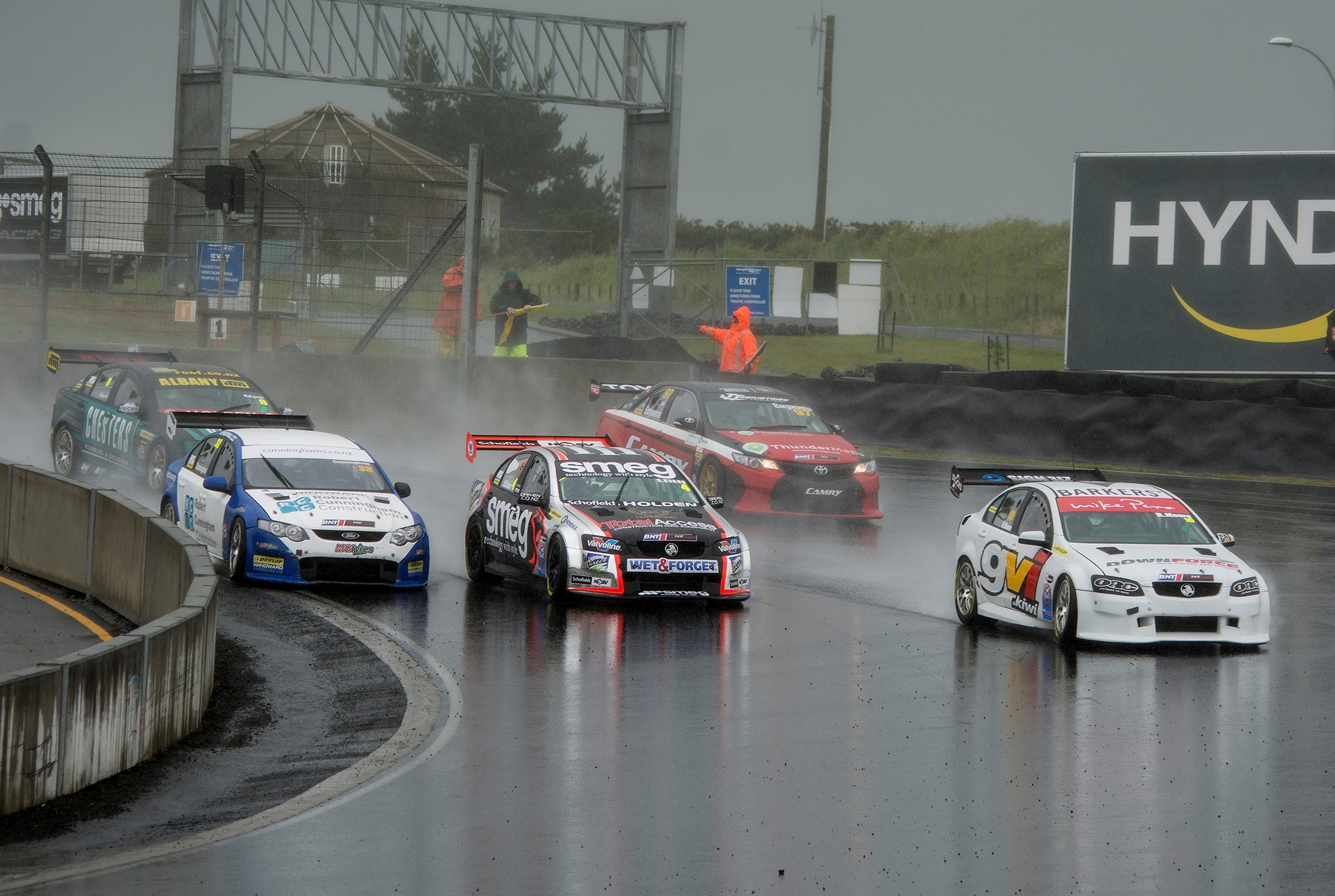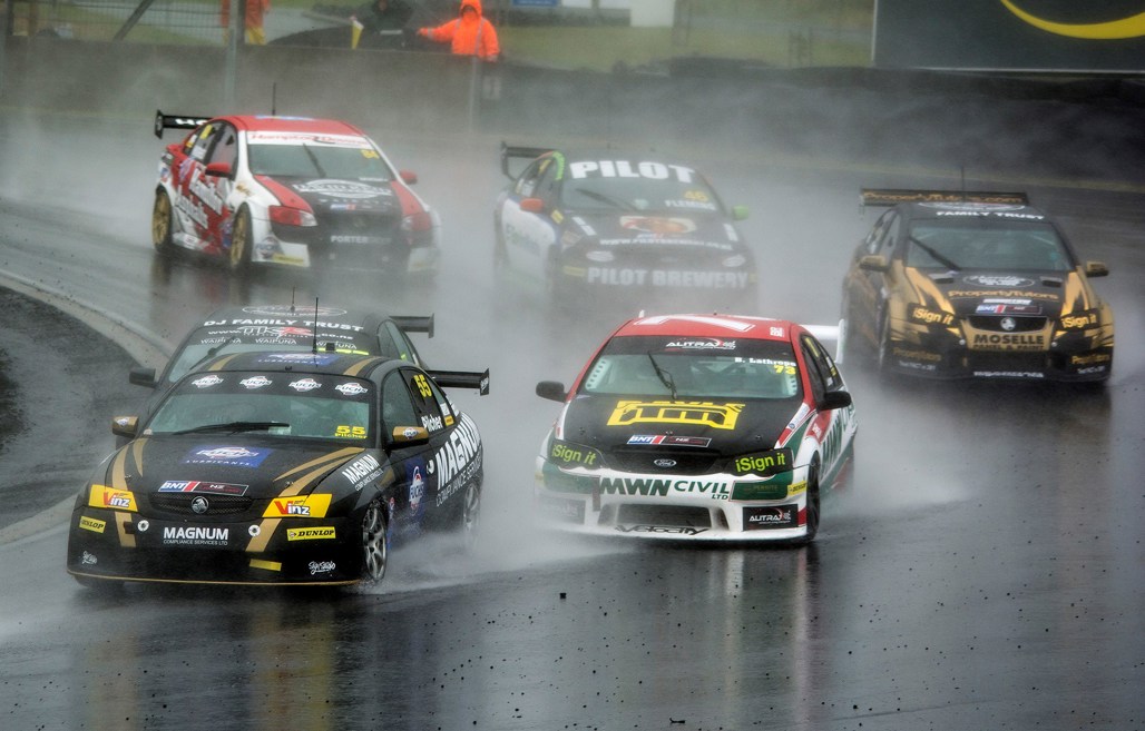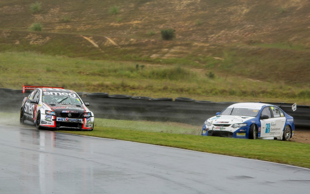 After the dry qualifying session, the opening race got underway in treacherous conditions - claiming an unlucky victim in Lance Hughes, who buried his Hamilton Asphalts Commodore in the turn four sand trap. The incident subsequently bought out the first safety car.